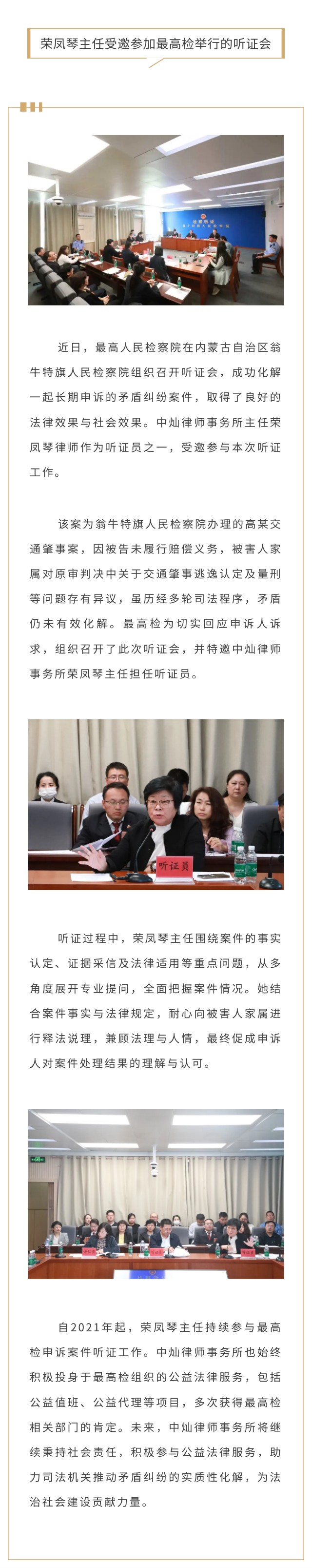 荣凤琴主任受邀参加最高检举行的听证会